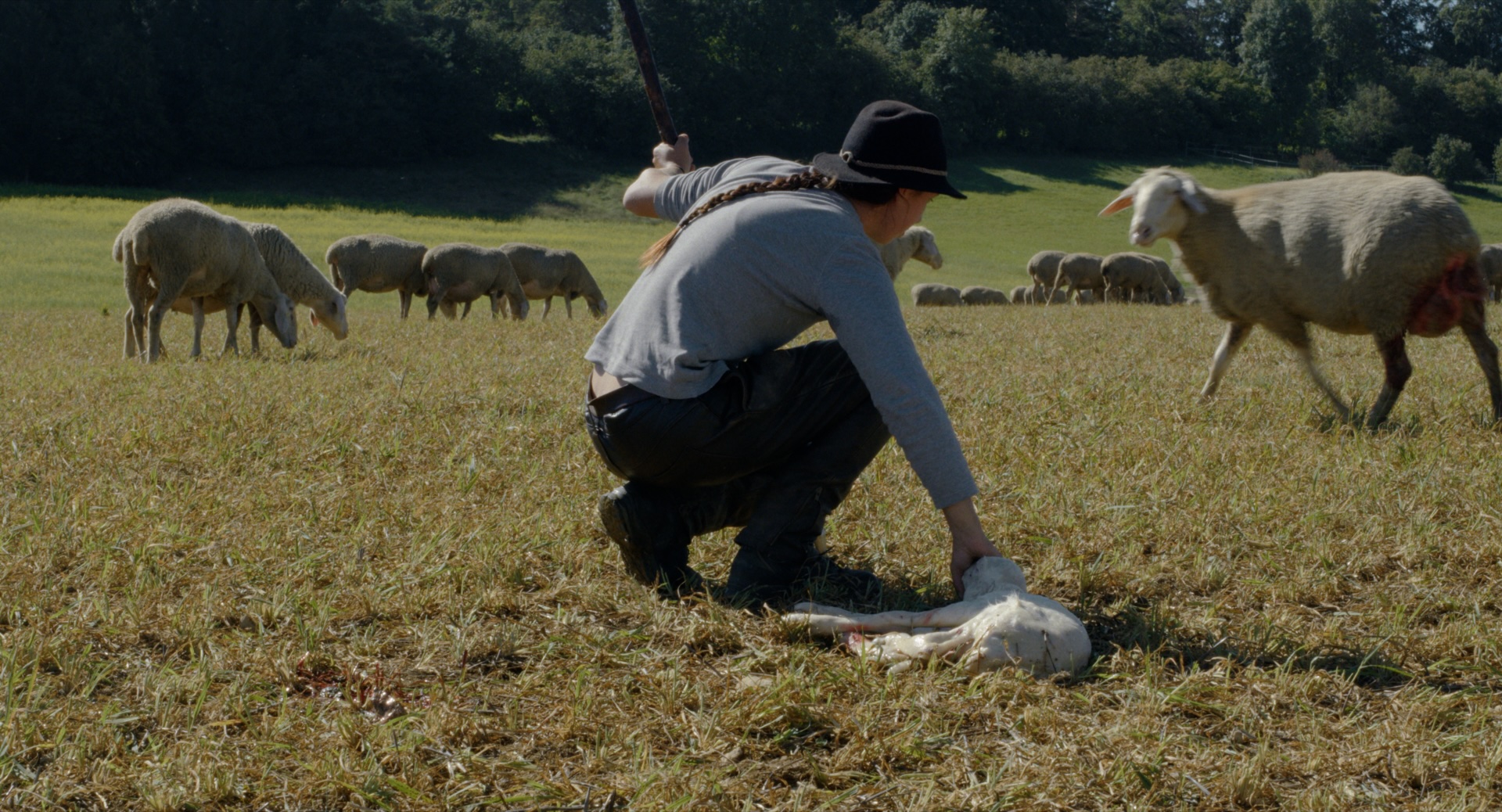 Das sei das besondere an der Schäferei, sagt Valeria, dass du alles selber machst. Von der Geburt und der Zucht bis – mitunter auch – zum Schlachten. Valeria ist Wanderschäferin. Sie ist die Schwester des Filmemachers Leonhard Pill und bildet das Zentrum des Films. Valeria führt ein Leben, das sich auf jede nur erdenkliche Art krass von dem ihrer Geschwister – neben Leonhard gibt es noch eine Schwester, Fidelia – unterscheidet. Sie wohnt in einem Wohnwagen, ohne fließendes Wasser. Erhält einen Mindestlohn. Bei jedem Wetter ist sie draußen, mit ihren Hunden, bei den Schafen. Sie kundschaftet die zur Verfügung stehenden Weiden – also Futterplätze – aus, spinnt die Schafwolle, bringt als Geburtshelferin Lämmer zur Welt, schneidet Klauen, schlachtet, kuschelt mit den Schafen, spricht mit ihnen, wacht über sie, Zigarette rauchend. Ja: Valeria macht alles selbst. Auch die Geburtstagsgeschenke für ihre Geschwister – zumindest, wenn sie eine Idee hat. Und genügend Zeit.