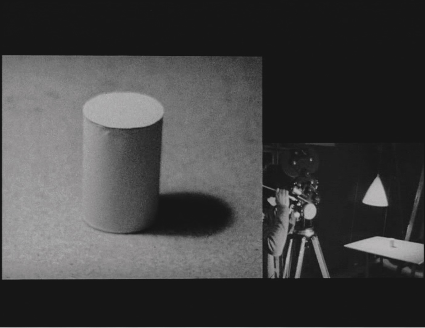 Die Elemente des Systems (=Struktur): eine (bewegte, subjektive) 16mm Kamera, eine konische Lampe und ein von der Lampe beleuchteter Zylinder. Der mit der 16mm Kamera aufgenommene Film analysiert das von den relativen Beziehungen der drei Elemente zueinander abhängige Wahrnehmungsbild, und er beweist die Tatsache, dass die das Wahrnehmungsbild hervorbringende Situation allein von diesem Wahrnehmunsbild ausgehend nicht rekonstruierbar ist. Den Beweis liefert eine zweite 16mm Kamera, die die Tätigkeit der beweglichen 16mm Kamera und den Prozess der Filmaufnahme dokumentiert. (Judit Király)