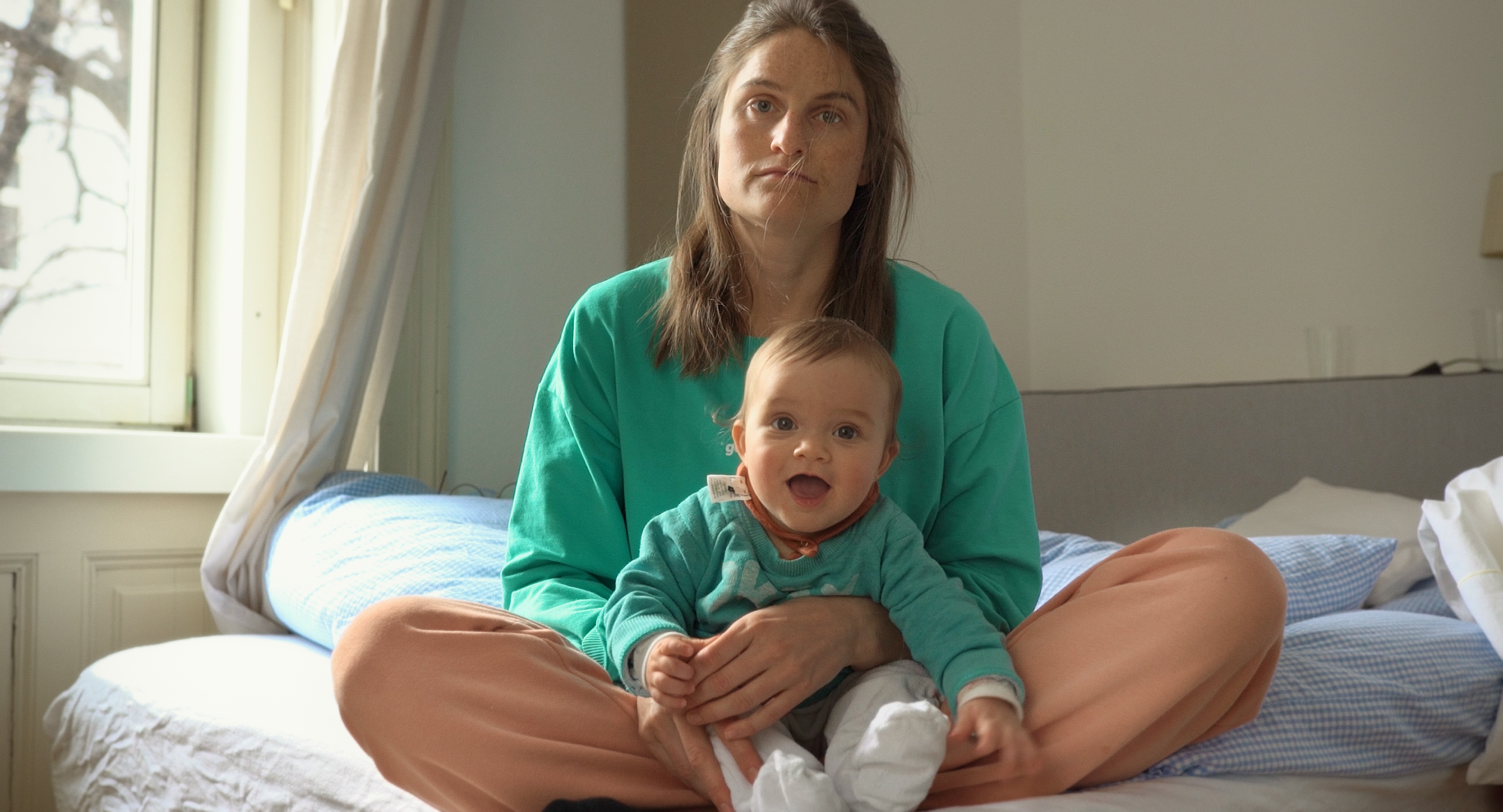 “Roses are red, violets are blue, I want to smash the patriarchy with you.” A red flyer in a picture frame. Next image: A cartoon drawing of a tall woman dragging a small man behind her with a leash attached to his phallic nose. Then Sophie Bösker, director, protagonist, and narrator of Motherigine, shows us a mattress in the apartment where these pictures are hanging: a “crappy mattress” belonging to her partner Georg. But it’s a bed where you can “sleep for eight hours. Without interruption.” And without a baby, all alone in your own room.