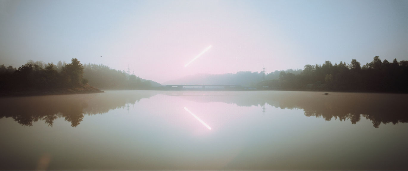 Over the course of twenty-two months, Johann Lurf fixed the gaze of a specially developed 65mm camera on a single fragment of the world: the Ottenstein Reservoir. What begins as a quiet observation of nature gradually transforms into a monumental image of cosmic motion. At first, the lake appears familiar – a place suspended between sky and water. But as the exposures grow longer, the dimensions themselves shift: stars begin to draw delicate lines, the sun inscribes bright arcs, the moon traces soft, almost calligraphic diagonals. The water surface becomes a perfect mirror that folds sky and landscape symmetrically into one another – above and below, light and shadow, becoming and fading.